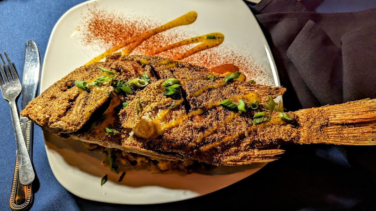 This restaurant gets a 10 out of 10! Great ambiance! Food was absolutely amazing! Sarah, our waitress was very kind, warm, and attentive! The drinks were also on point! We will definitely be back! We had the whole red snapper and the catfish! Chef’s kiss! Sides: Savannah red rice with sausage, collard greens with smoked turkey, candied yams, and corn muffins! All ten out of 10! For desert we shared the sweet potato cheesecake! Totally delicious! Get here!! They won’t disappoint! Drink…blacker the berry! Amazing!
